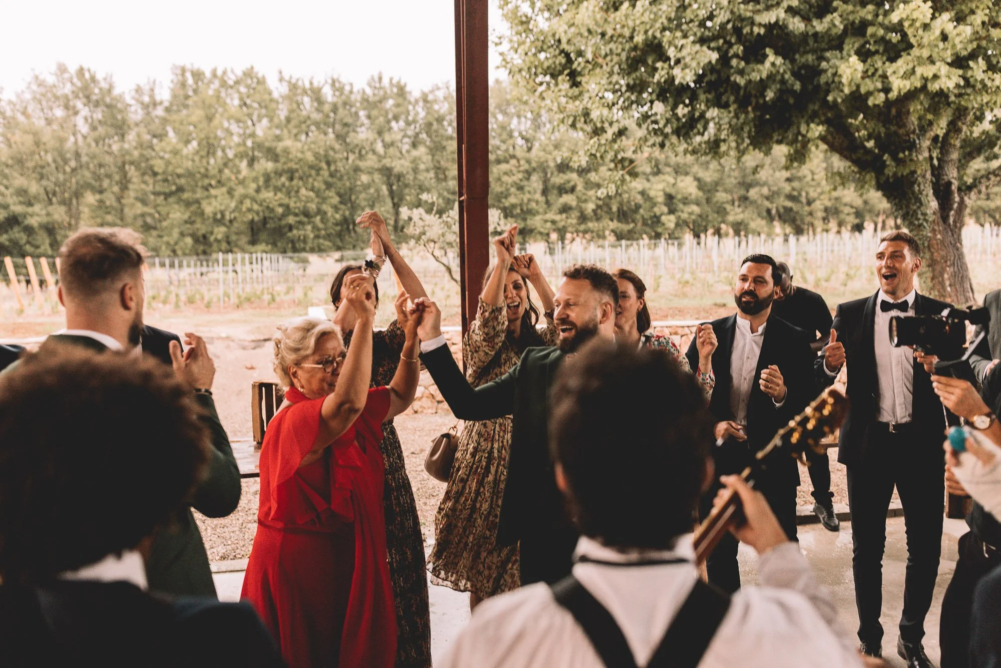 Pour refléter l’esprit libre du jour J, voici une petite anecdote : au moment du repas, il paraît que le four ne marchait pas et que les pommes de terre ne pouvaient pas être cuites. La Wedding Planner s’est adressée à nos témoins pour leur demander de faire continuer la fête avec le groupe de musique, le temps de trouver une solution (finalement apportée par le lieu), sans que l’on soit au courant. Nous avons eu écho de ce problème technique uniquement le lendemain et alors que nous étions trop occupés à chanter sur « Bella Ciao », nous nous sommes doutés de rien…