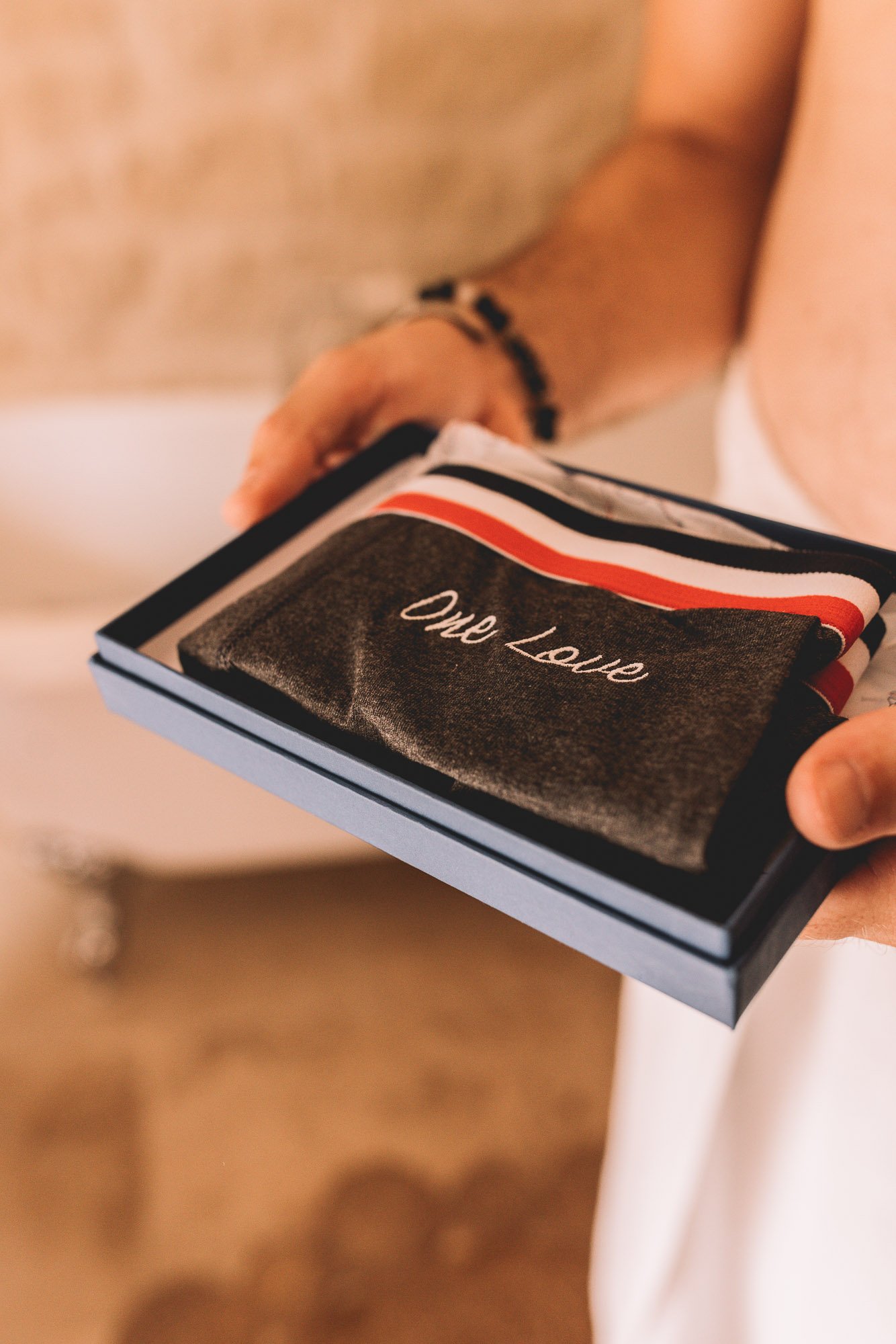 Pour nos sous-vêtements, nous portions des boxers personnalisés de la marque Le Slip Français, à laquelle nous sommes fidèles également.