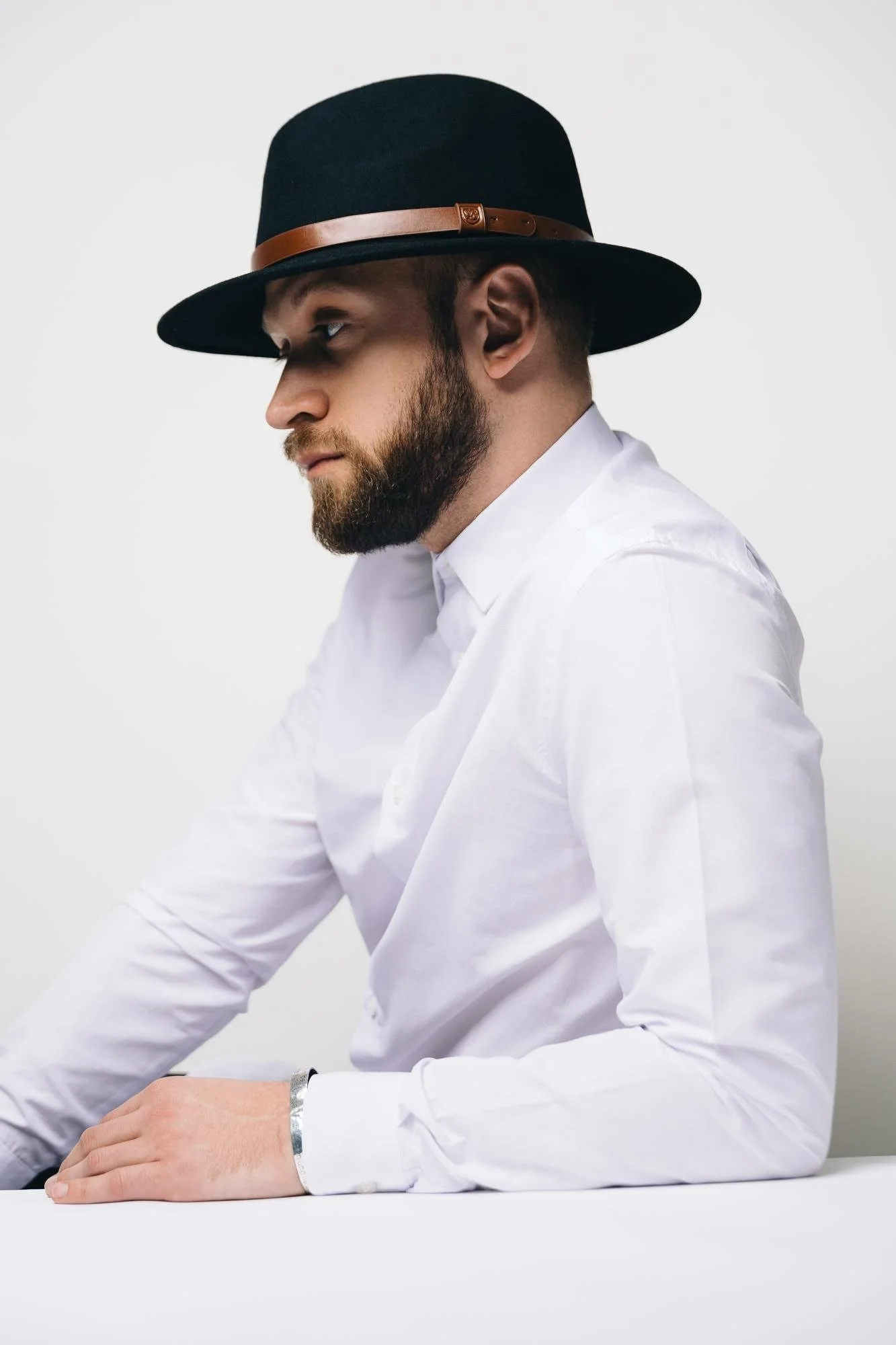 Pour la 2nde option de ce look bicolore, j’ai souhaité cassé le côté exclusivement blanc en haut et noir en bas avec une nouvelle touche de noir sur la tête. Et pour cela, bien entendu, je ressors mon chapeau légendaire, symbole ultime de ce blog dédié à la mode homme. Ici, j’ai opté pour le Messer Fedora, un incontournable de la marque Brixton. Celui-ci vient confirmer l’élégance de la tenue. Soyez certain que les chapeaux Brixton sont d’excellente qualité pour un prix relativement accessible. En laine feutrée, le modèle Fedora est doté d’un intérieur en coton très confortable. La bande de cuir, sublimée par le logo de la marque, apporte un sens du détail certain.