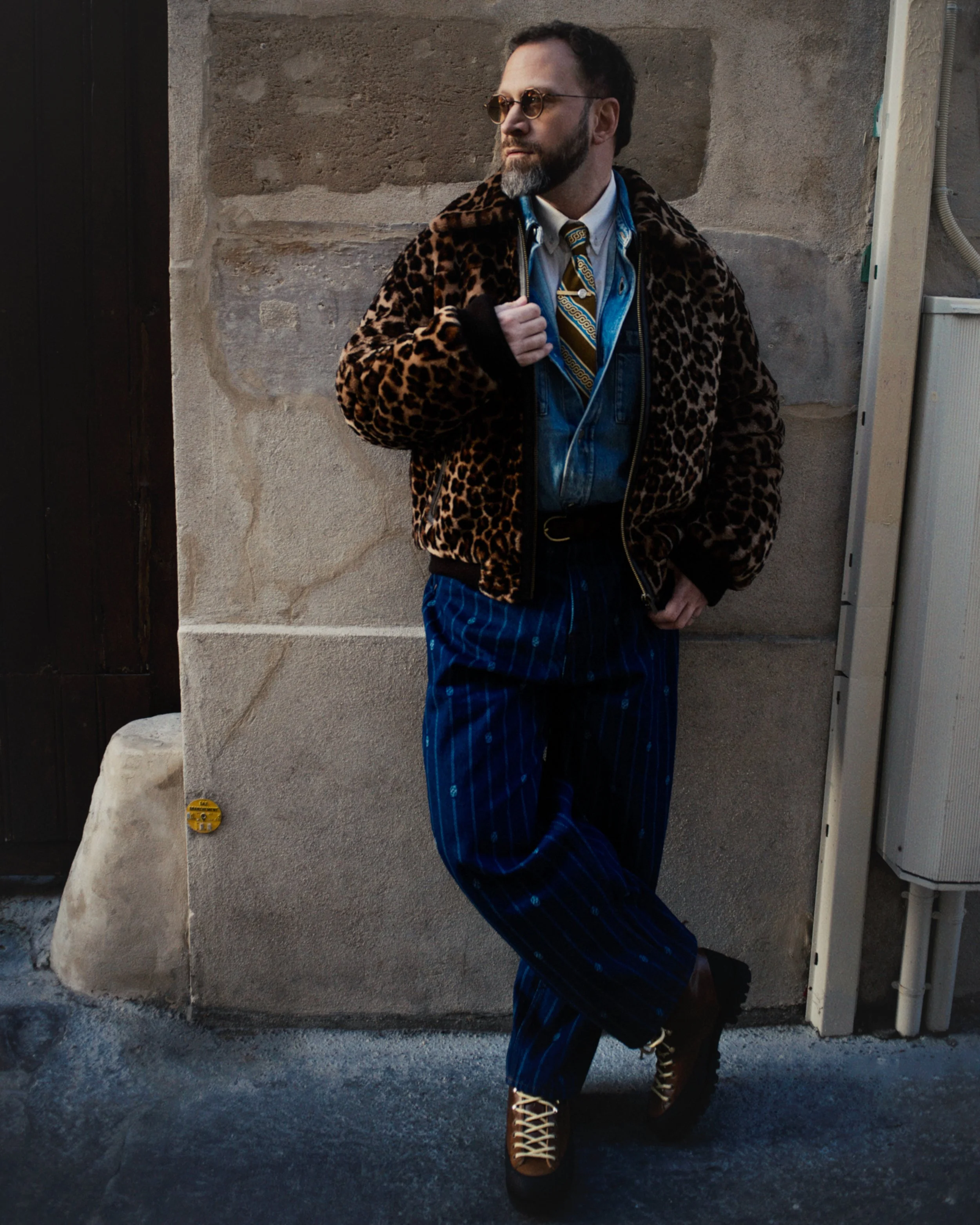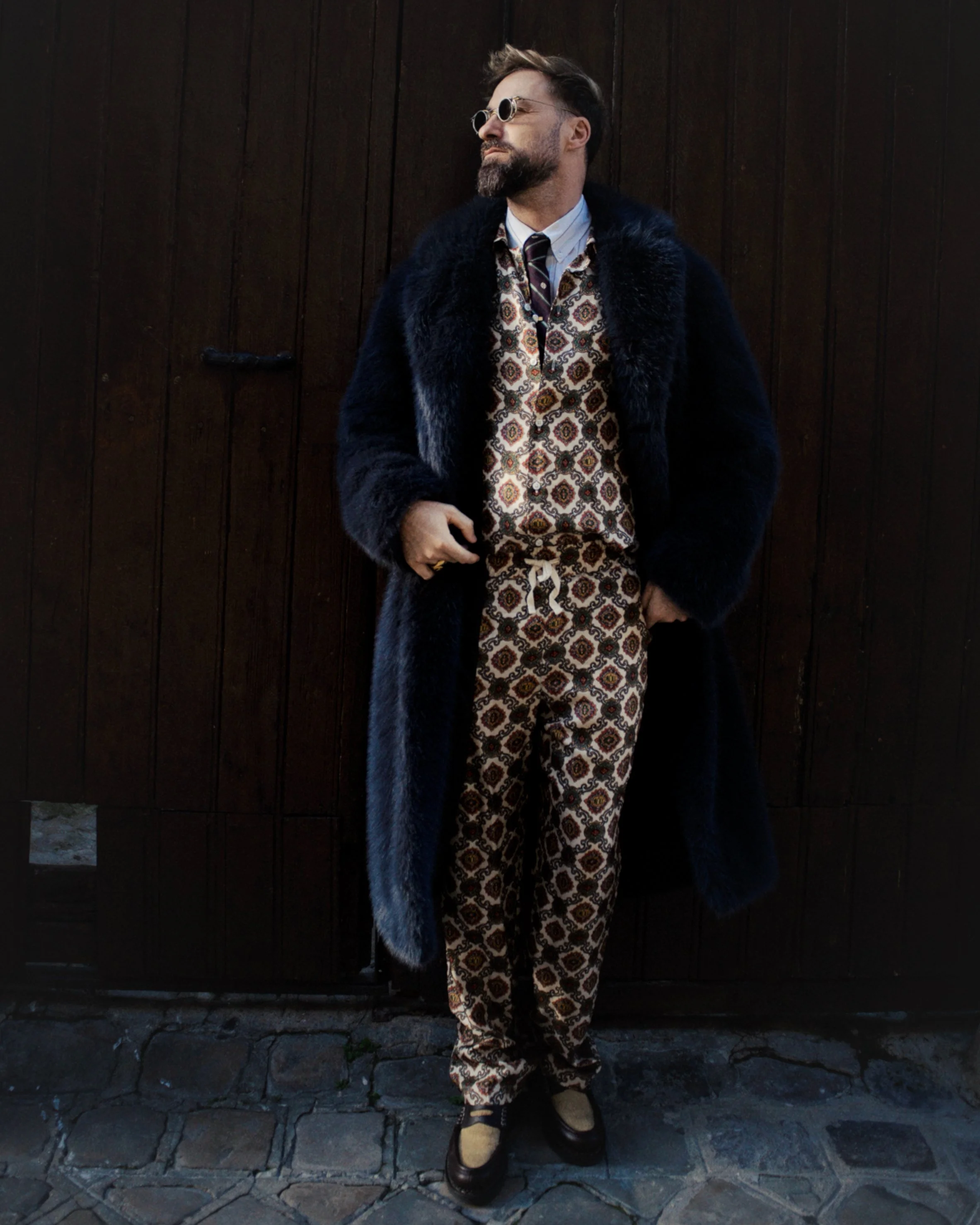 Pour mon mari, également, c’est d’abord une histoire de manteau… Il avait craqué sur cette fausse-fourrure longue, dans la collection Drôle de Monsieur Automne - Hiver 2024. Jusqu’alors, il ne l’avait portée qu’une seule fois : pour se rendre au casino de Monaco, justement… À l’époque, je me souviens lui avoir dit : “Mais tu vas porter ça quand chez nous, en fait ?”.