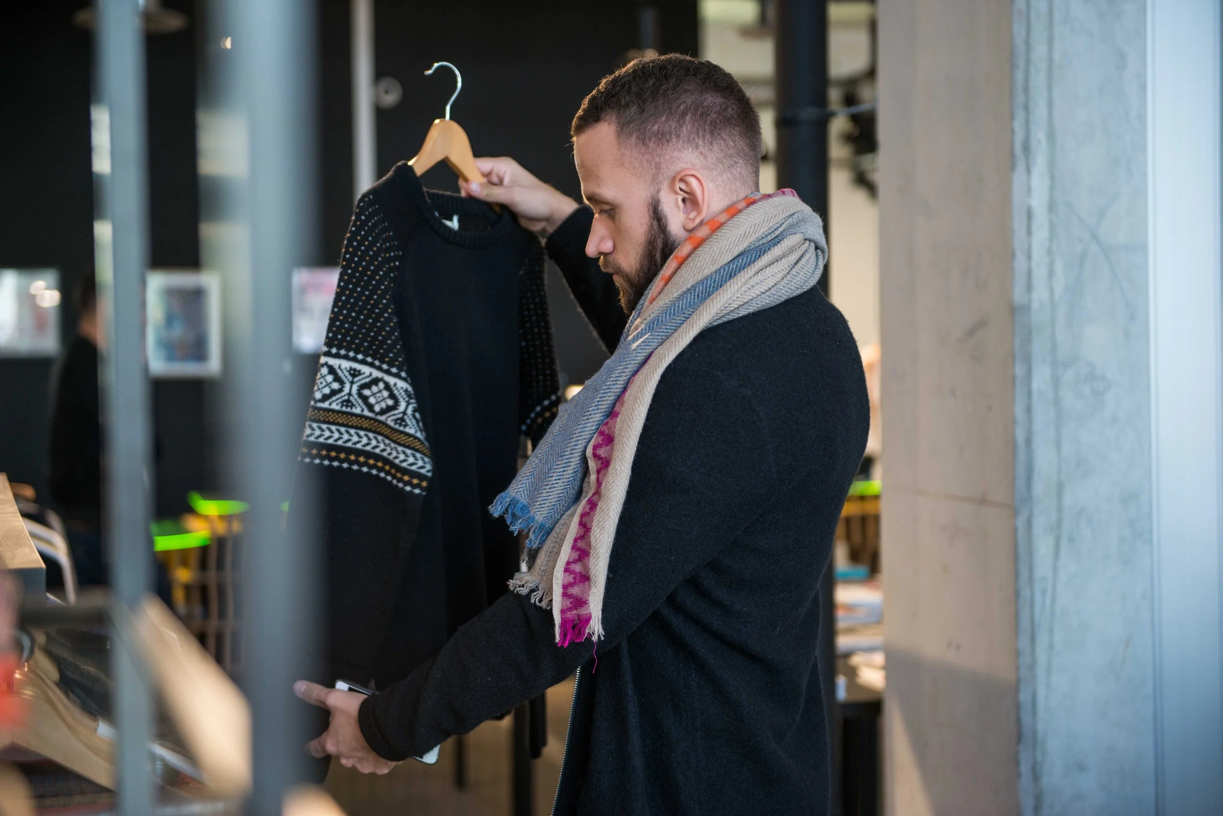 Enfin, je suis très content de ma nouvelle écharpe Monsieur Charli qui m’a permis de me couvrir alors que j’étais encore un peu malade, et de me découvrir dans les magasins en la mettant tout simplement autour de mon cou. J’ai craqué sur ce modèle « Edimbourg », en laine tissé. Ses fines rayures et chevrons de motifs géométriques dans des tons doux, viennent éclaircir une tenue hivernale. Surtout, on retrouve l’identité tribale propre à Monsieur Charli. Je suis définitivement toujours autant séduit par les accessoires masculins proposés par cette marque !